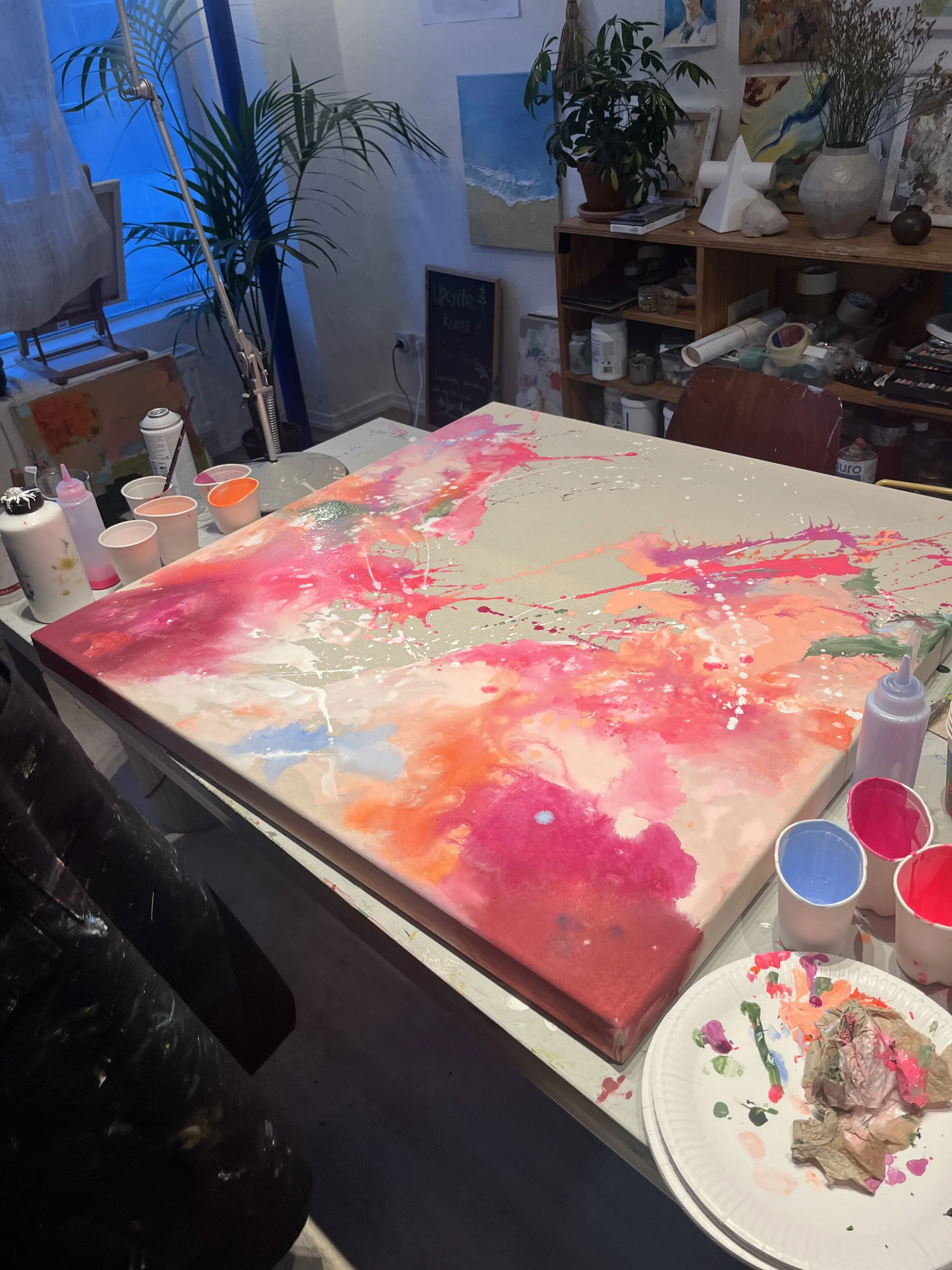 Zu Hause zu malen bedeutet oft: zu wenig Platz, fehlende Materialien, Chaos danach und alles wieder aufräumen.
